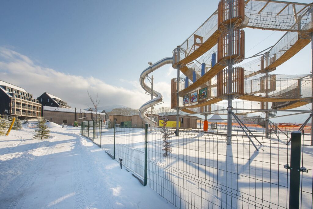 FUN Center a Kids Zone vedľa terasy Pinusu. Preliezačky a šmýkačky s mäkkou dopadovou plochou aj detské autíčka.