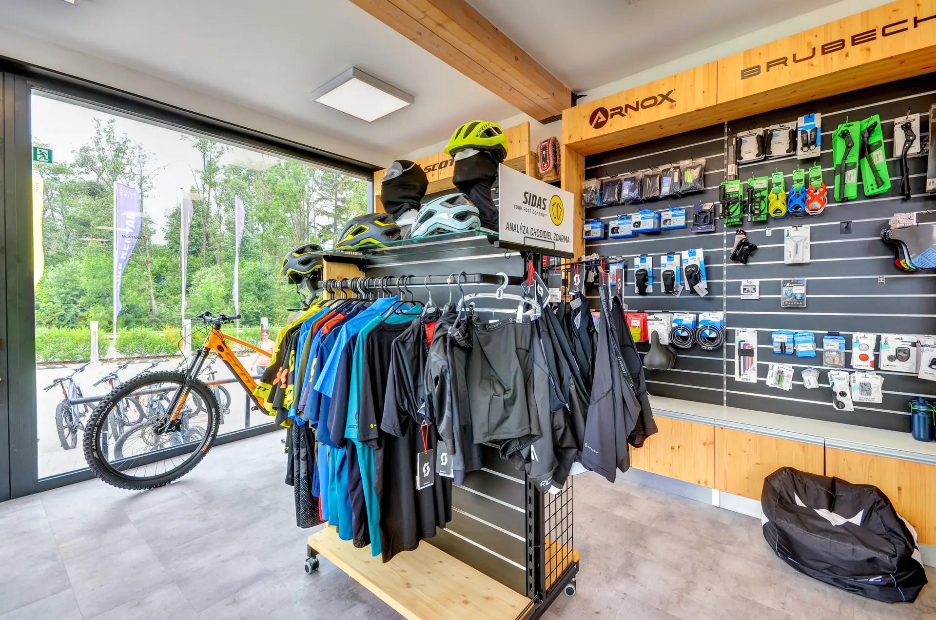 U nás nájdete silné zázemie kvalitného servisu, ktoré poskytuje zadarmo self-service, vyhradenú zónu so základným náradím, kompresorom, lepením či nabíjacími stanicami. V požičovni si môžete tiež zakúpiť náhradné diely, cyklo doplnky, oblečenie a iné.