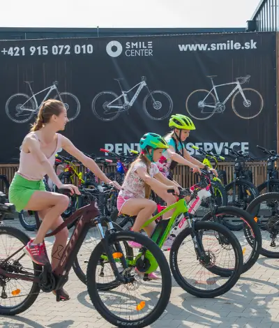 Radi trávite čas na bicykli? Lákajú vás cyklotúry po Liptove? V našom rezorte nájdete jednu z najlepšie vybavených požičovní elektrických bicyklov na Slovensku – Bike SMILE. K dispozícii máme dostatočné množstvo nových e-bikov pre dospelých aj pre deti. Okrem toho si, samozrejme, môžete požičať aj klasické bicykle. Veľkou výhodou v našej ponuke sú aj sedačky a vozíky, aby vás na výlety mohli sprevádzať aj tí najmenší. U nás môže celá rodina spoločne vyraziť na výlet.