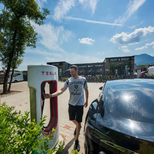 Sme ekologický rezort a netajíme sa tým, že s nadšením podporujeme elektromobilitu. Aj preto sú v areáli k dispozícii klasické nabíjacie stanice pre všetky druhy elektromobilov. Skutočnou špecialitou pre majiteľov Tesly je originálny Tesla Supercharger – jeden zo štyroch na celom Slovensku.