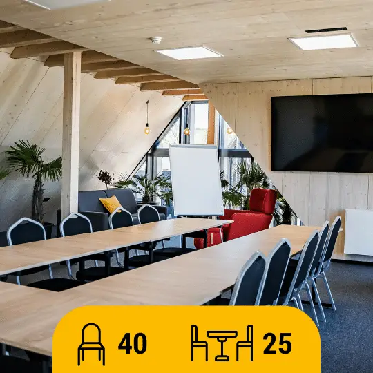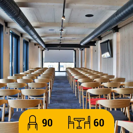 Konferenčná miestnosť Robinia disponuje rozlohou 85m² a so svojou kapacitou je ideálna na menšie pracovné stretnutia. K dispozícii je vám plátno, projektor, kvalitná WiFi a počas horúcich dní klimatizácia.
