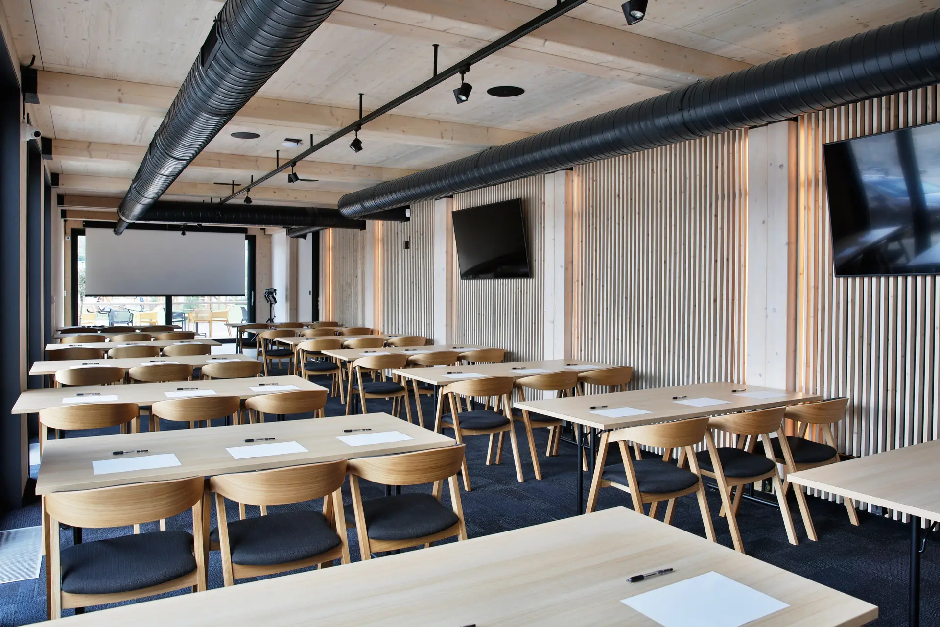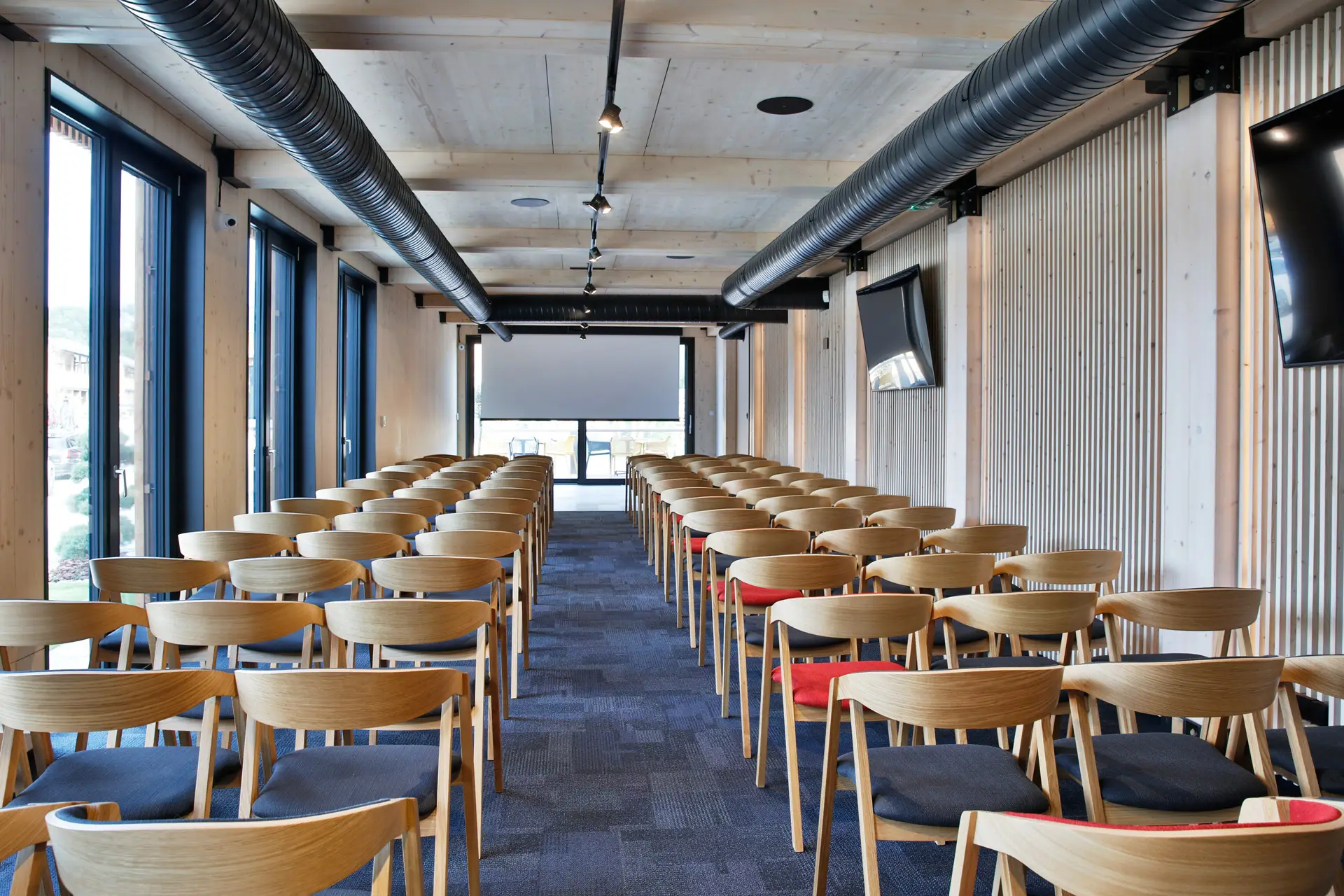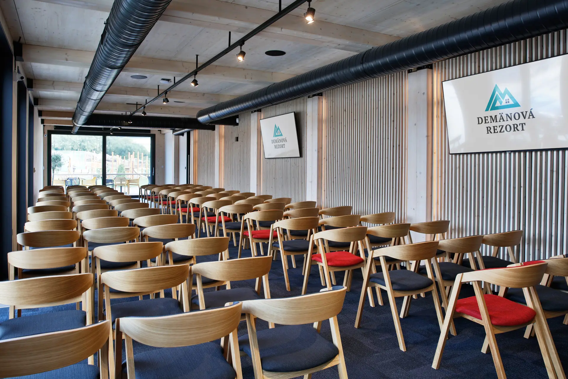 Kongresová miestnosť na prízemí s rozlohou 85m² je plne technicky vybavená, klimatizovaná a pokrytá kvalitným WiFi pripojením, takže sa nemusíte obávať problémov s technikou alebo práce v online prostredí. K dispozícii je vám plátno, televízie a zatemňovací systém.