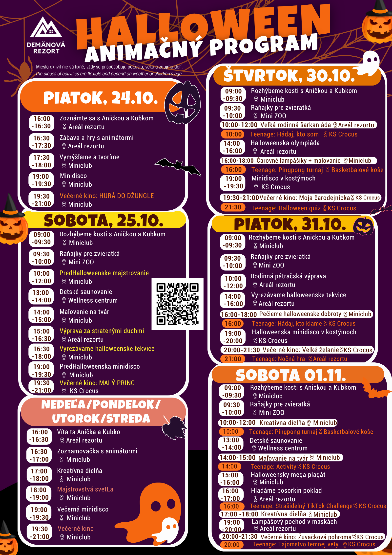 Pripravte sa na špeciálny animačný program so strašidlami a našimi turbo animátormi, ktorí si pre vás vymyslia vždy niečo nové. Trúfnete si aj na najväčšiu Galériu strašidiel na Liptove?