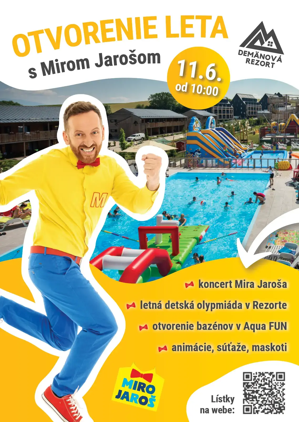 Sme veľmi radi, že už v sobotu, 11. júna, u nás privítame deťmi milovaného Mira Jaroša. Od 17:00 sa našim Rezortom budú ozývať tie najchytľavejšie detské hity, radosť a spev tých najmenších fanúšikov. Nepremeškajte rodinný koncert Mira Jaroša pod holým nebom!