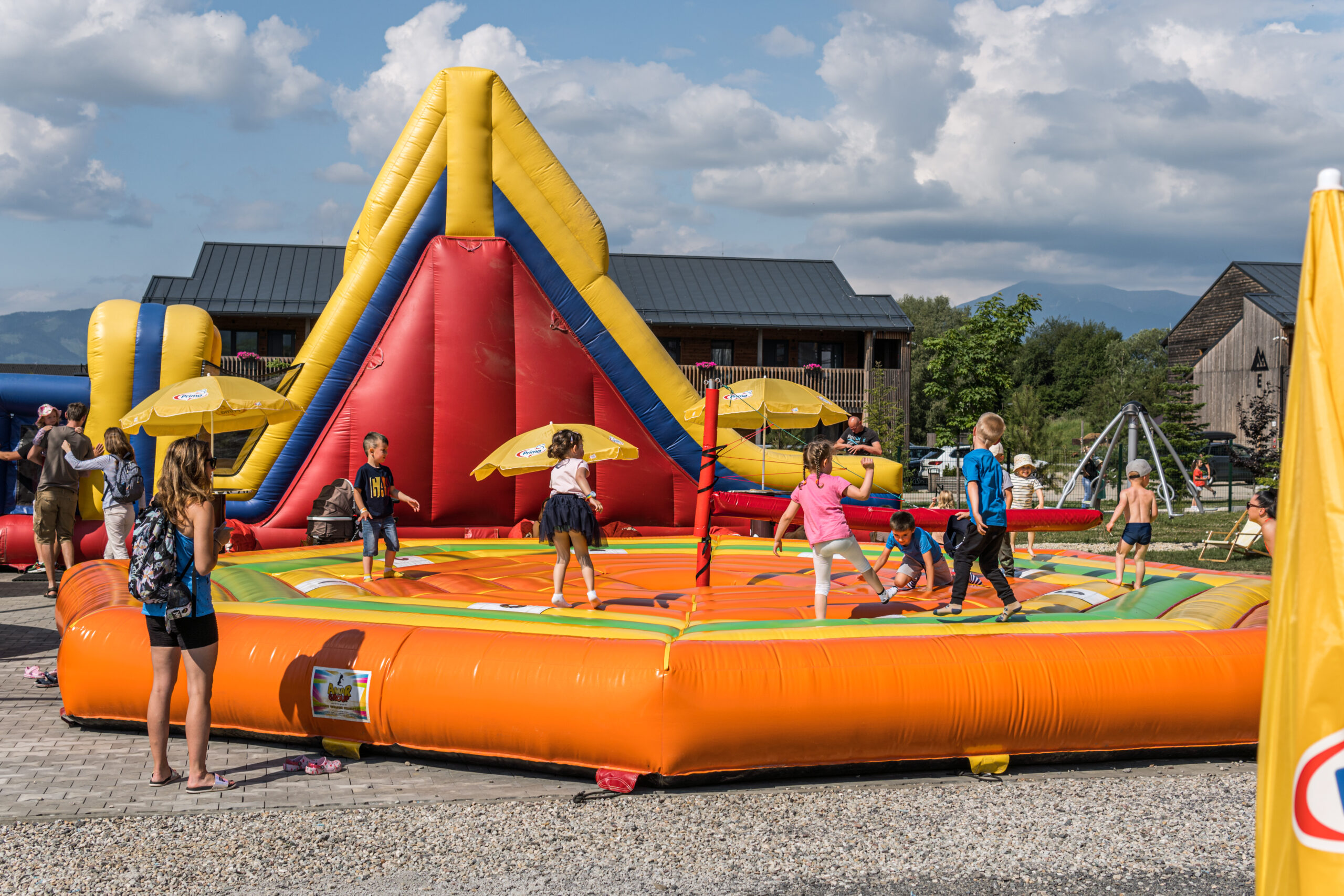 Detský smiech: Kým sa deti zabávajú vo FUN centre alebo na kolotočoch, vy si môžete vychutnať kávu na terase s výhľadom na Nízke Tatry.