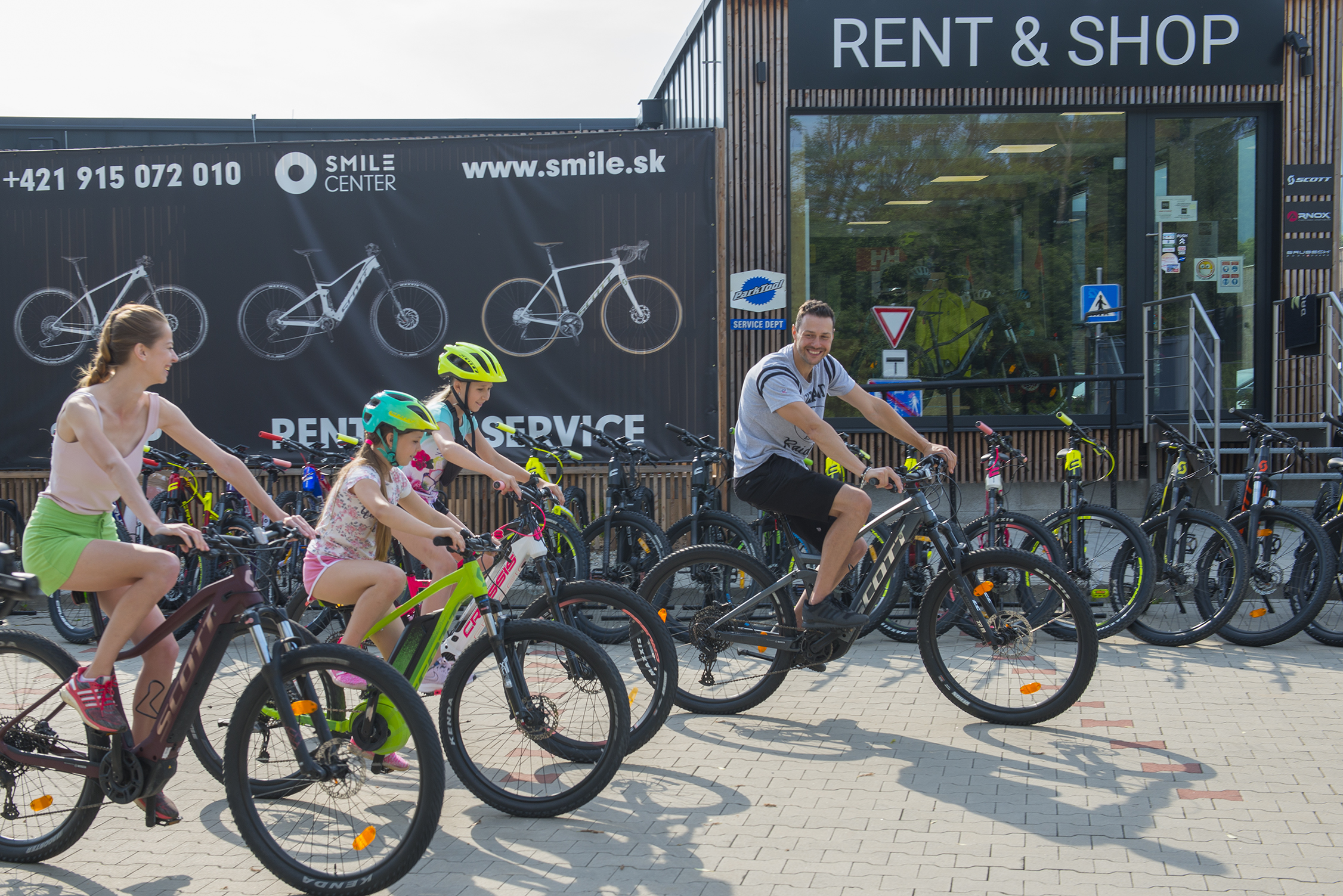Áno. Priamo v našom centre sa nachádza požičovňa elektrických bicyklovkde si môžete prenajať bežné a elektrické bicykle pre dospelých a deti. Pre najmenších sme pripravili sedačky a vozíky, aby mohli ísť na výlet s vami.
