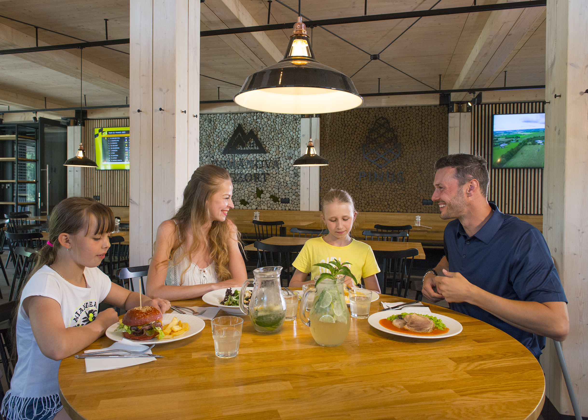 Samozrejme, súčasťou centra je Reštaurácia PINUS, ktoré rozplývajú chuťové bunky dospelých aj detí. Druhá možnosť je o niečo exotickejšia – nad reštauráciou Pinus sa nachádza indická reštaurácia SAFRAN. Tu si môžete vychutnať raňajky, obed aj večeru.