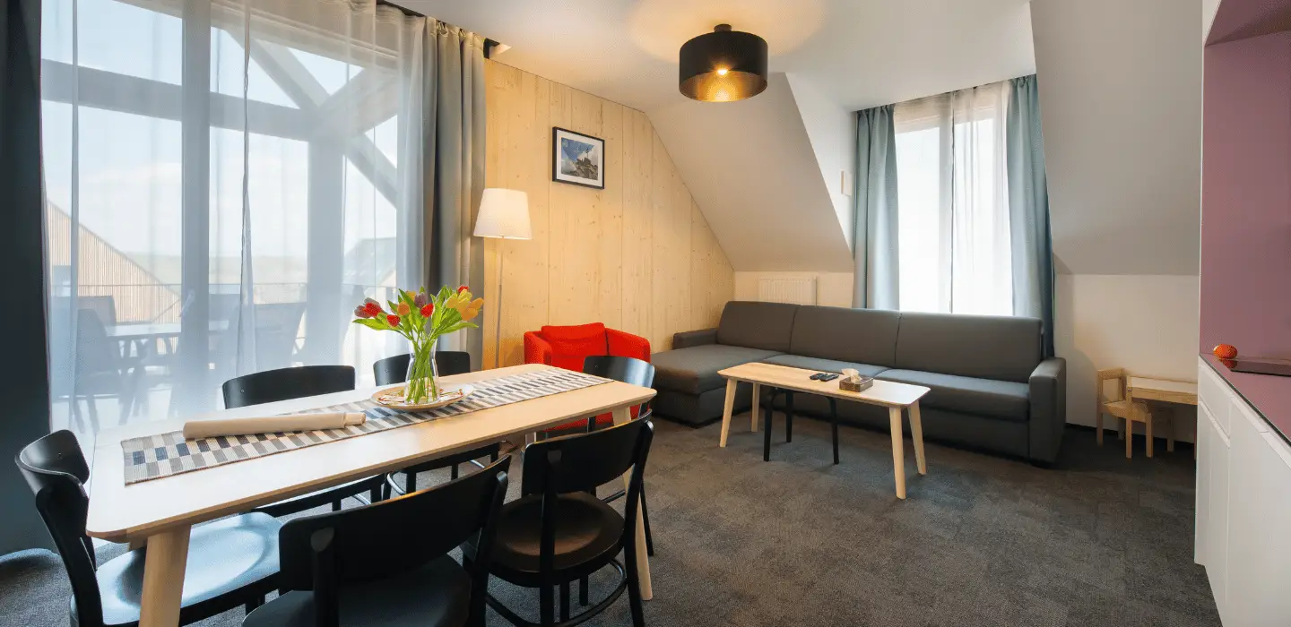 Kapacita Demänová Rezort postačuje aktuálne pre viac ako 1 000 hostí. Vybrať si môžete z rôznych veľkostí aj štandardov apartmánov.