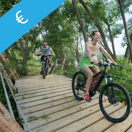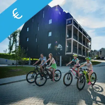 Áno. Priamo v našom centre sa nachádza požičovňa elektrických bicyklovkde si môžete prenajať bežné a elektrické bicykle pre dospelých a deti. Pre najmenších sme pripravili sedačky a vozíky, aby mohli ísť na výlet s vami.
