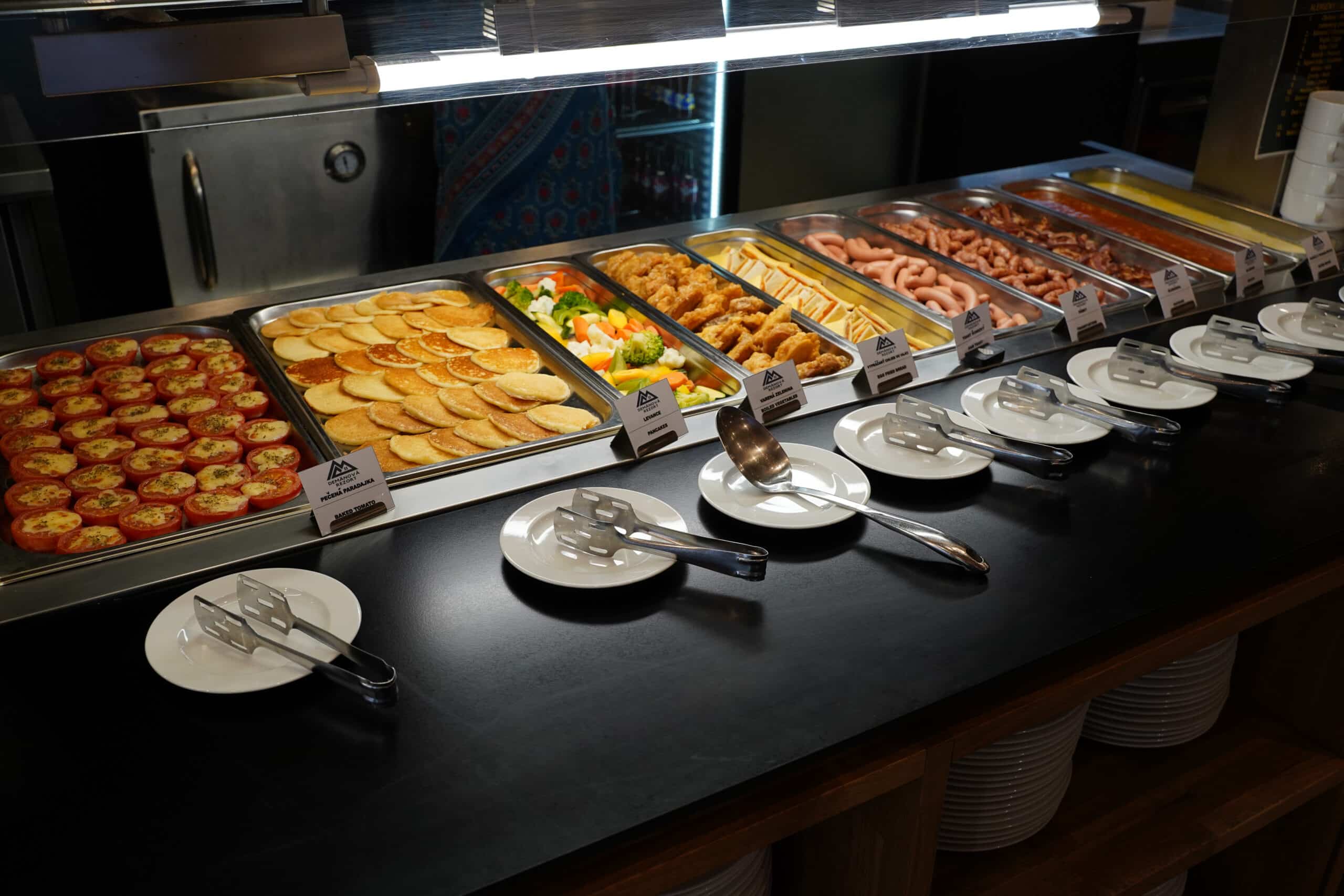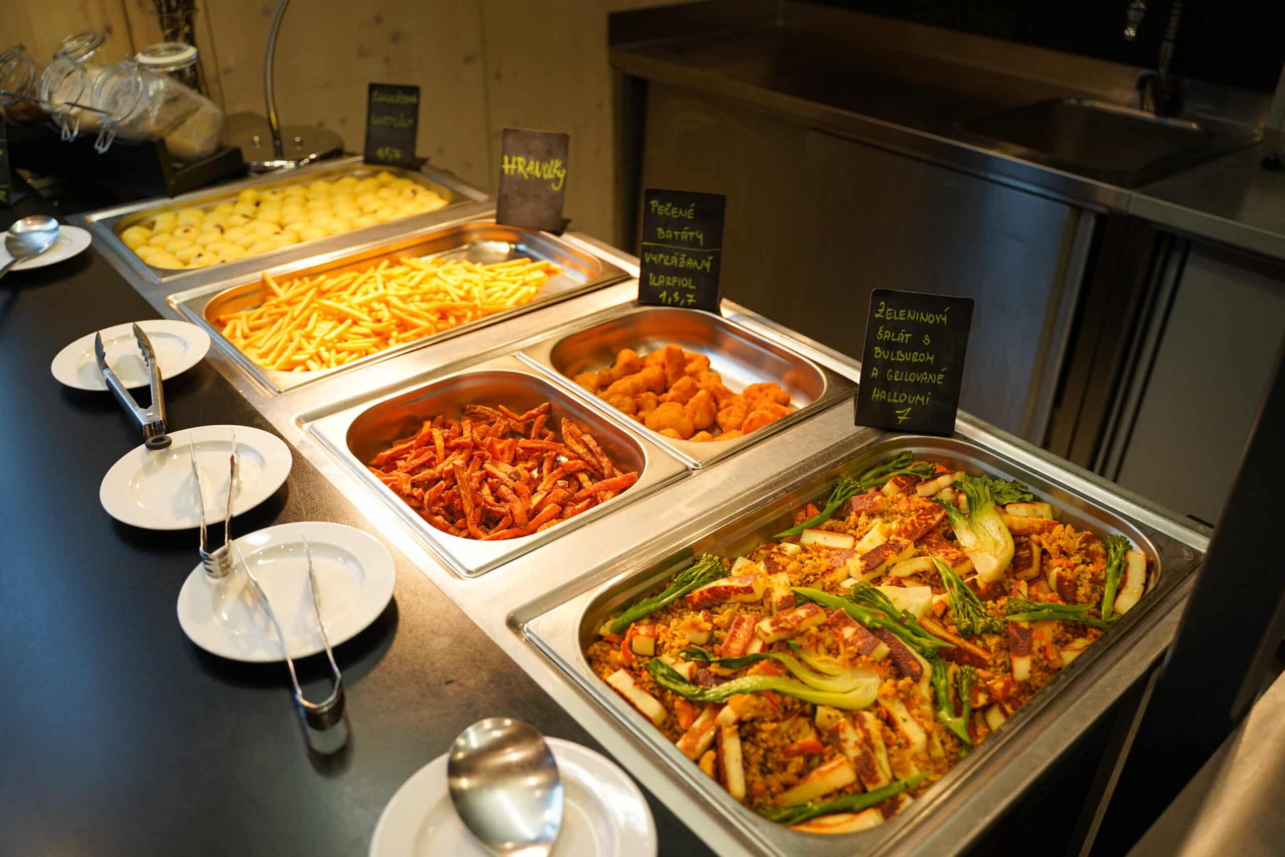 Bufetové stoly vždy ponúkajú rôzne jedlá, od tradičných až po špeciality indickej kuchyne.
