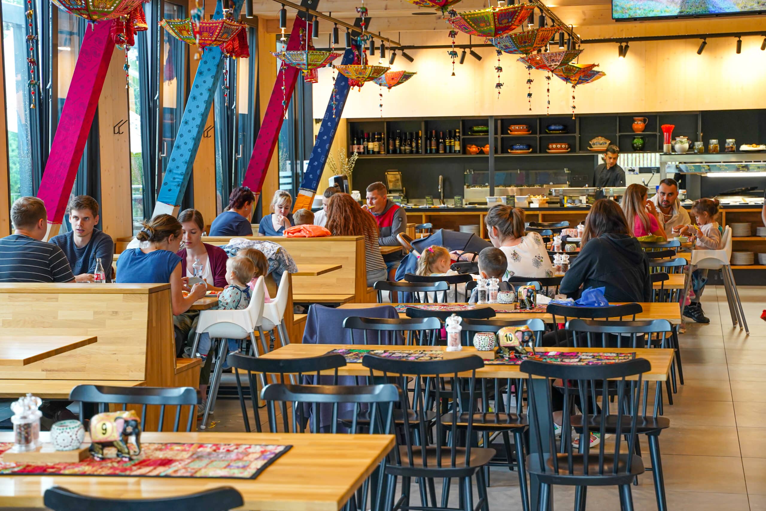 Ak sa raňajky alebo večere konajú v niektorej z reštaurácií, pre rodiny s kočíkmi odporúčame dolnú reštauráciu PINUS. Indická reštaurácia SAFRAN je prístupná po schodoch bez výťahu.