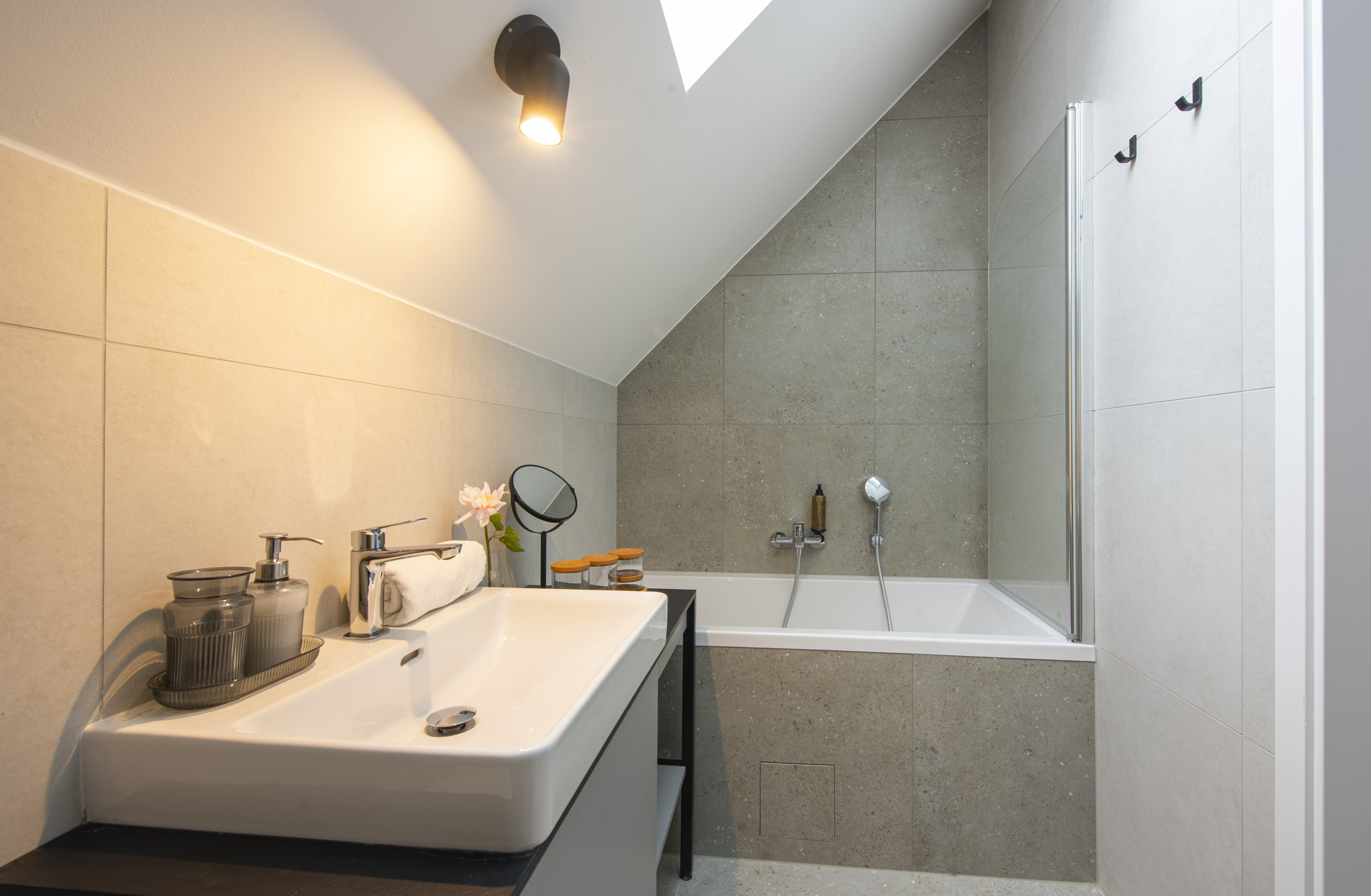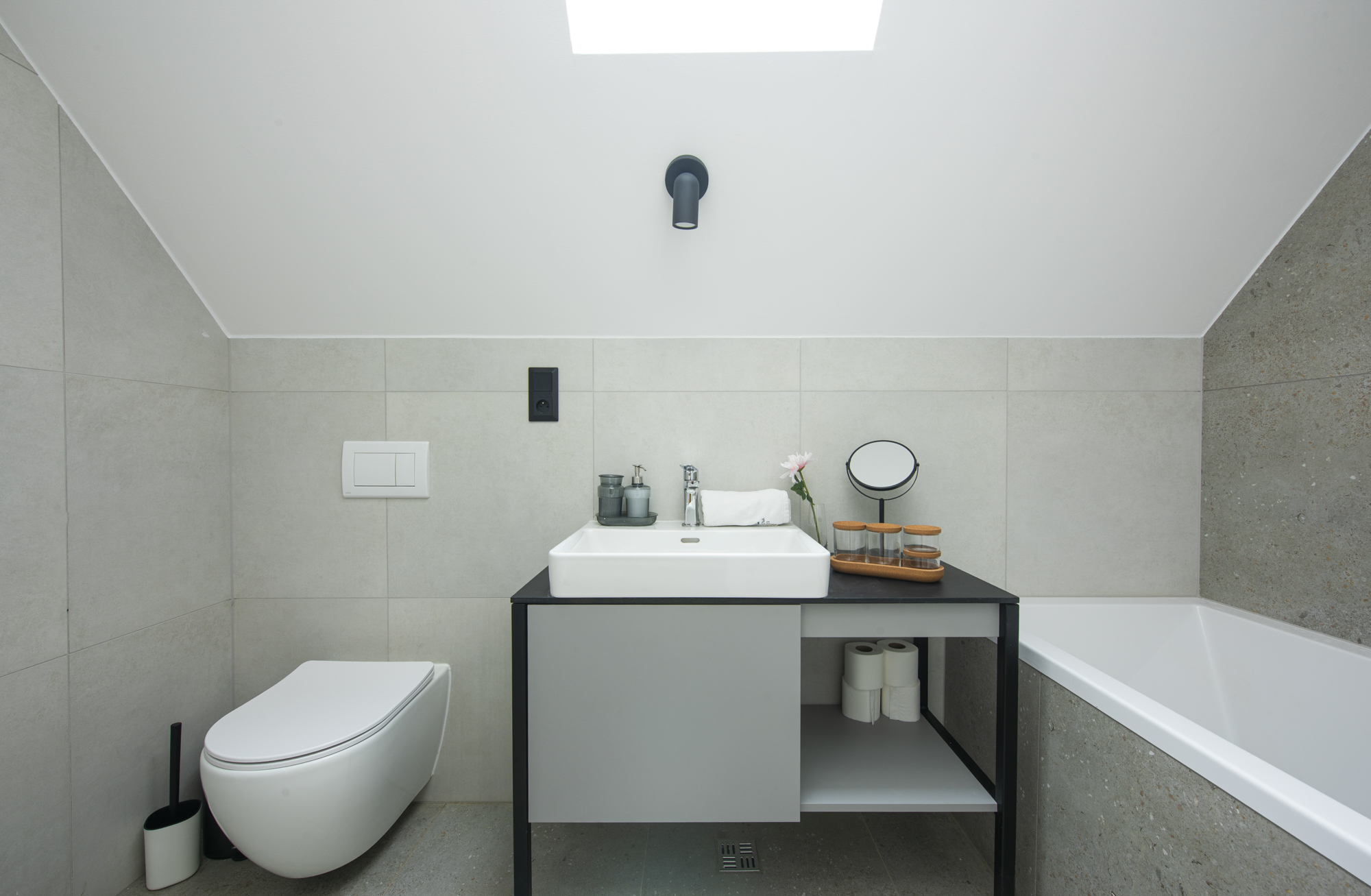 V kúpeľni každého bytu je dávkovač sprchovacieho gélu a šampónu v jednom. Navyše, ak prídete na pobyt s dieťaťom/deťmi do 10 rokov, v kúpeľni vám necháme aj milé prekvapenie – mini kozmetickú súpravu pre deti.