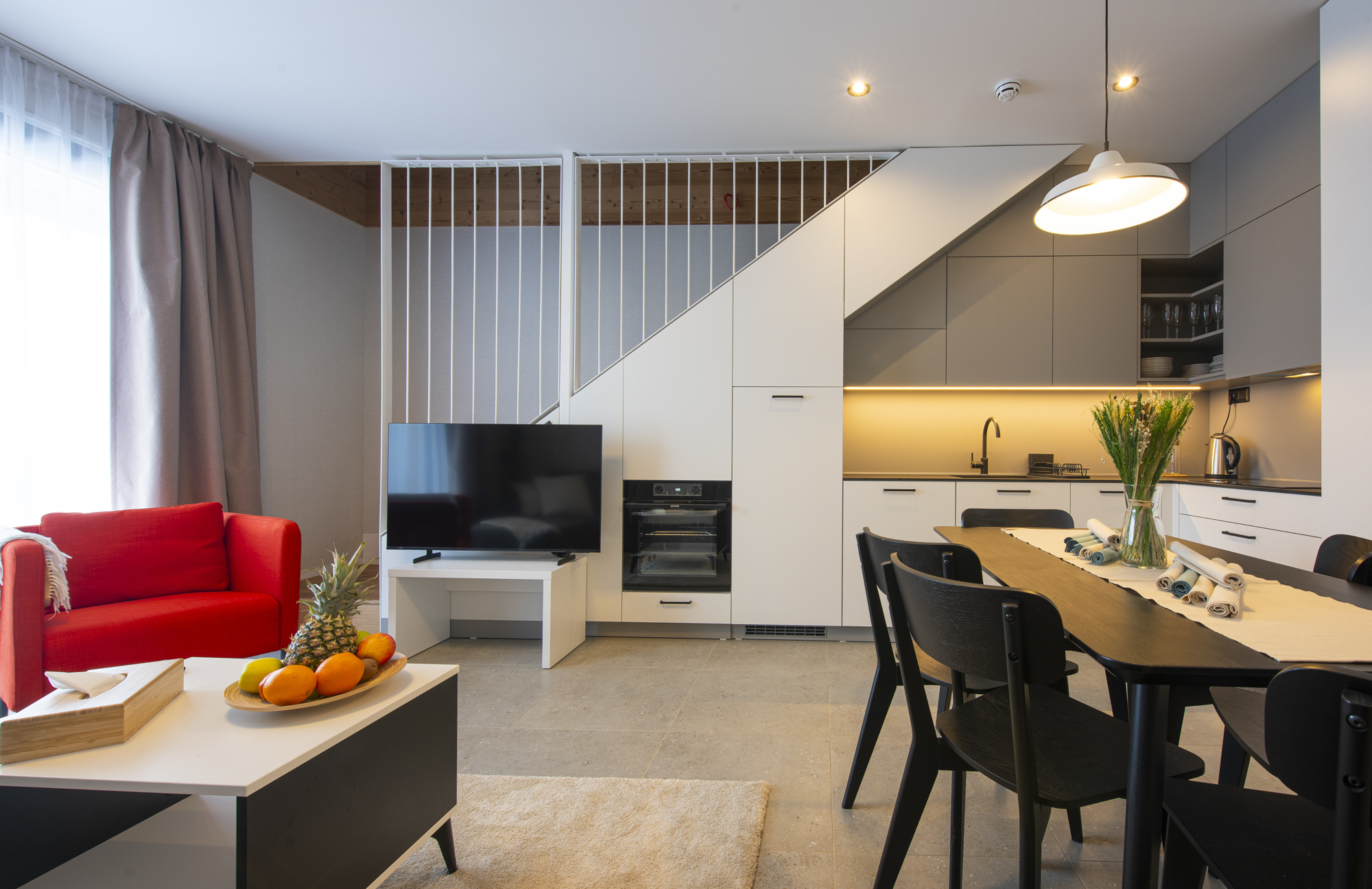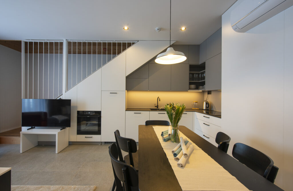 Elegantný interiér, dostatok lôžok a premyslené usporiadanie spální s obývacou časťou vytvárajú ideálne zázemie pre vaše rodinné zážitky.