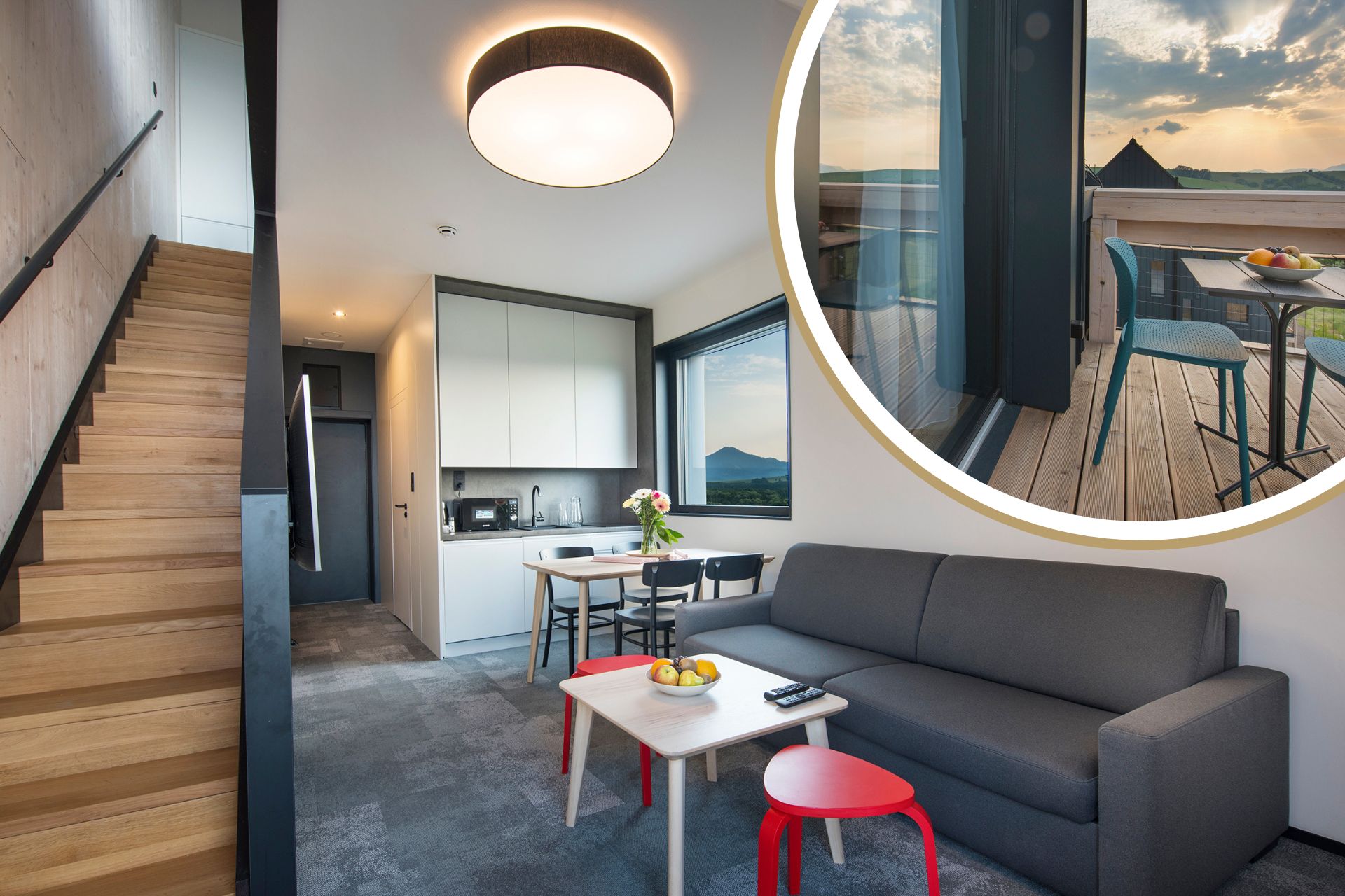 Hľadáte ubytovanie na Slovensku pre rodiny s deťmi? Jednou z možností je aj náš veľký rodinný apartmán. Mezonetový byt Family View je súčasťou apartmánového domu Pinea a je ideálny najmä pre väčšie rodinky. Vďaka manželskej posteli, dvojposchodovej posteli pre deti a rozťahovaciemu gauču sa do tohto apartmánu zmestí až šesťčlenná rodina. Apartmán je zariadený v príjemnom škandinávskom štýle plnom jemných farieb a vône dreva, čo vám zabezpečí pohodlie a pocit domova.