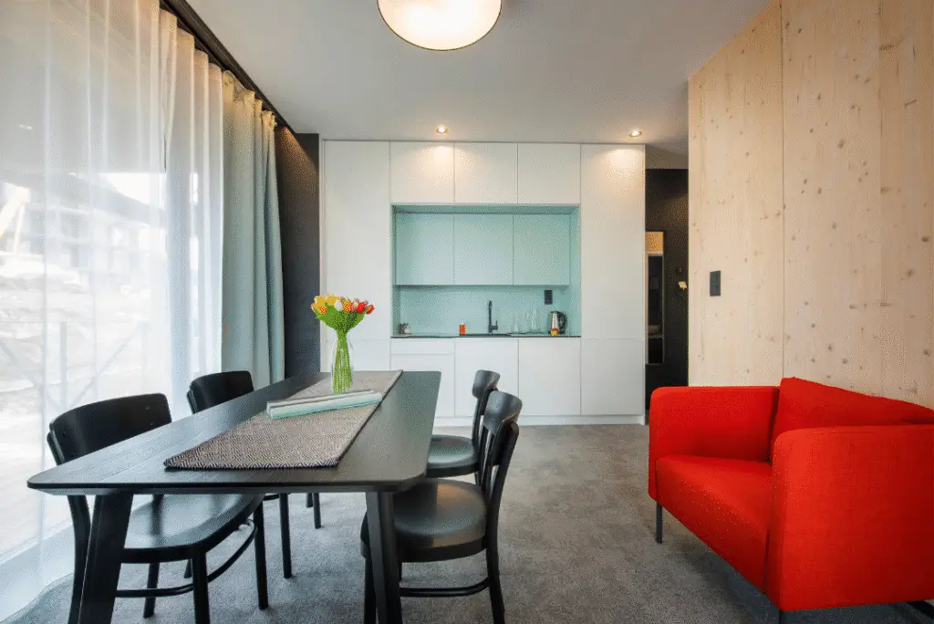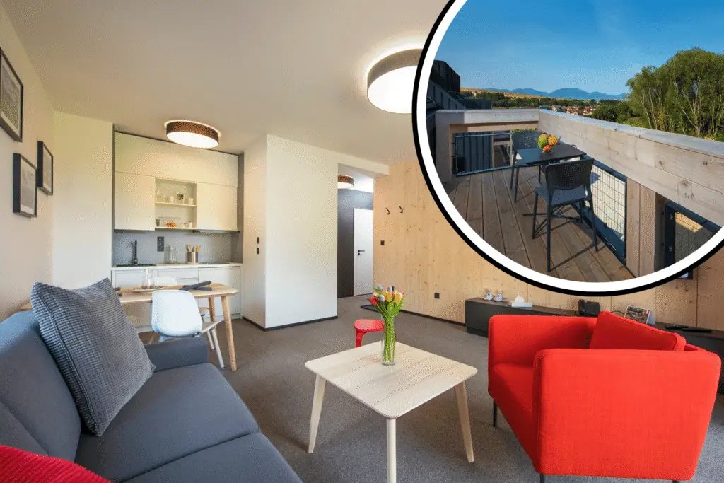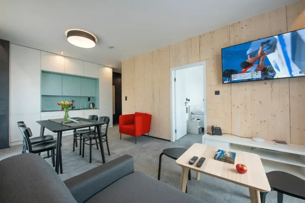 Apartmán Standard je ideálny, či už hľadáte víkendový pobyt na Slovensku pre dvoch alebo ubytovanie na letnú dovolenku pre štvorčlennú rodinku. Spokojní budete aj v prípade, že ste malá skupinka kamarátov alebo dva zamilované páry. Máme pre vás pripravené všetko, čo budete potrebovať. Od odkladacieho priestoru na kabáty, bundy a mikiny v podobe veľkého úložného priestoru, ktorý sa nachádza hneď pri vchodových dverách, až po terasu s výhľadom.