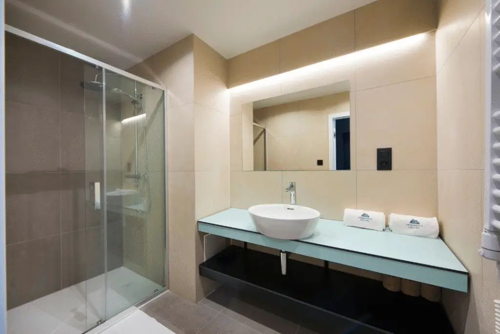 V kúpeľni každého bytu je dávkovač sprchovacieho gélu a šampónu v jednom. Navyše, ak prídete na pobyt s dieťaťom/deťmi do 10 rokov, v kúpeľni vám necháme aj milé prekvapenie – mini kozmetickú súpravu pre deti.