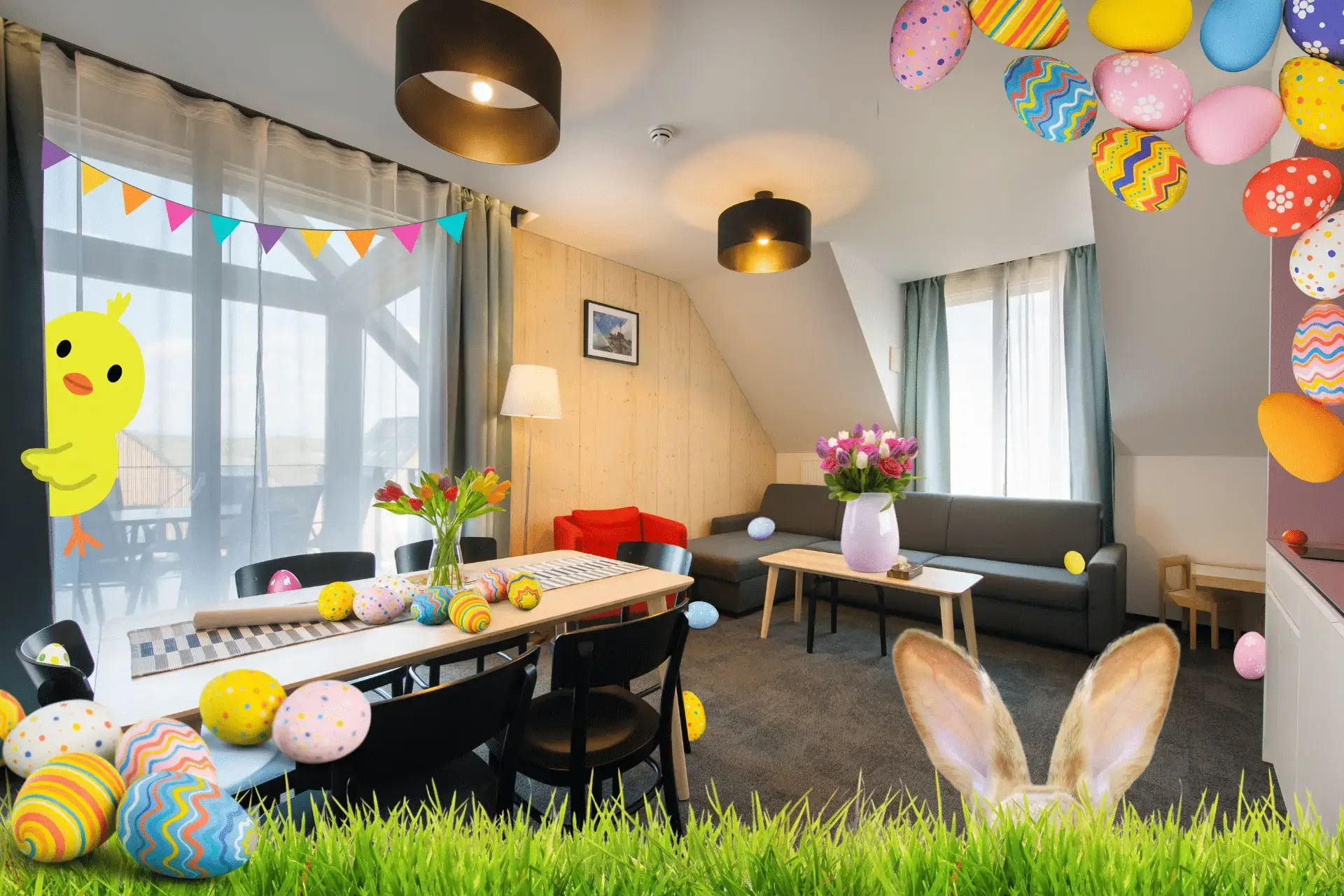 Veľkonočná výzdoba, pestrofarebné vajíčka, vôňa jarných kvetov a sladká chuť vianočky či mazanca. Strávte nezabudnuteľný pobyt vo veselom veľkonočnom mezonete! Okrem premyslených sviatočných detailov sme si vymysleli špeciálnu aktivitu pre deti – hľadanie veľkonočného pokladu! Čo nájdu podľa indícií v tajnej skrýši apartmánu? Nechajte sa prekvapiť, zábava zaručená!