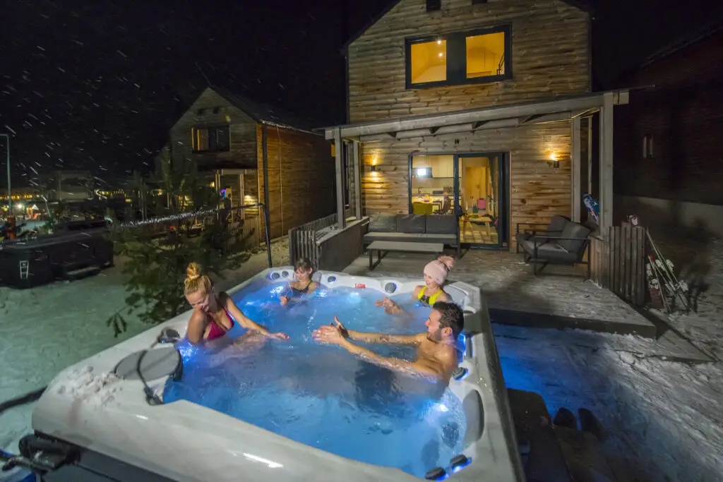 Aj keď sú chaty DeLuxe určené pre skupinky, sú vhodné aj pre páry, ktoré hľadajú ubytovanie so súkromným wellness na Liptove. Keďže majú chaty saunu a vlastnú vírivku na terase, pre odvážlivcov je možné vyskúšať aj wellness bez plaviek.