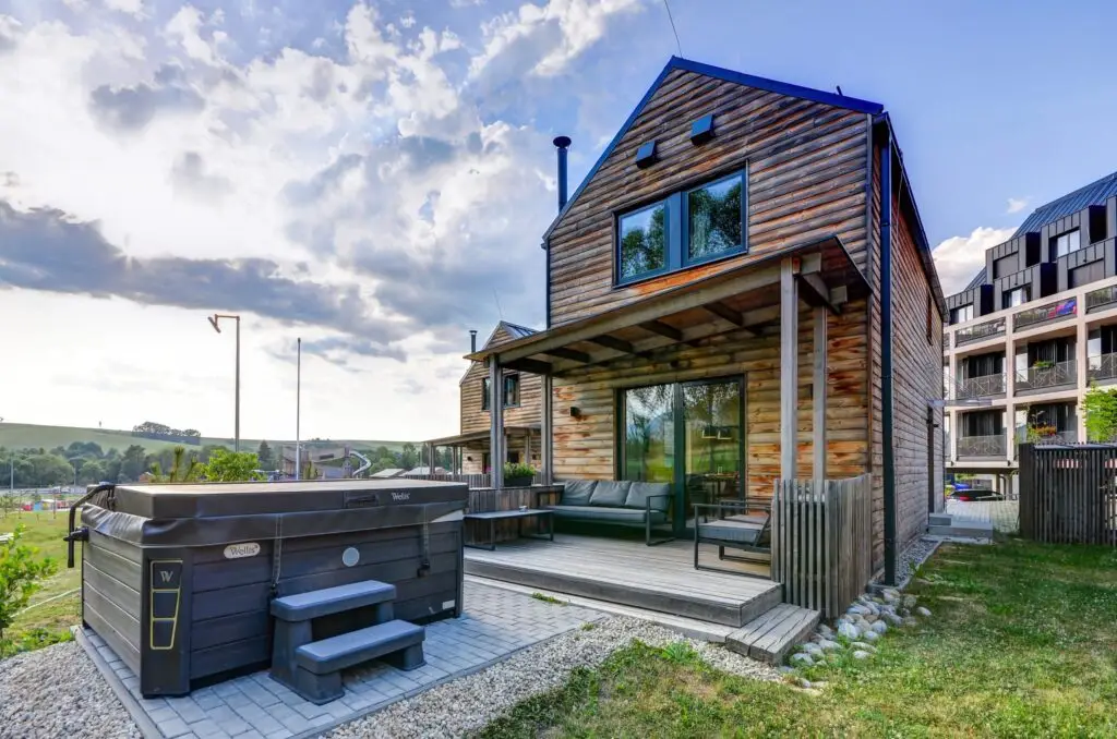 Chata DeLuxe ponúka ubytovanie s vlastnou vírivkou na terase, neobmedzený a súkromný wellness, ktorý zdieľate len s vašimi blízkymi. Vstupy do Wellness centra nie sú v cene. Namiesto zdieľaného wellness centra si užijete vlastnú saunu a vírivku v cene pobytu.
