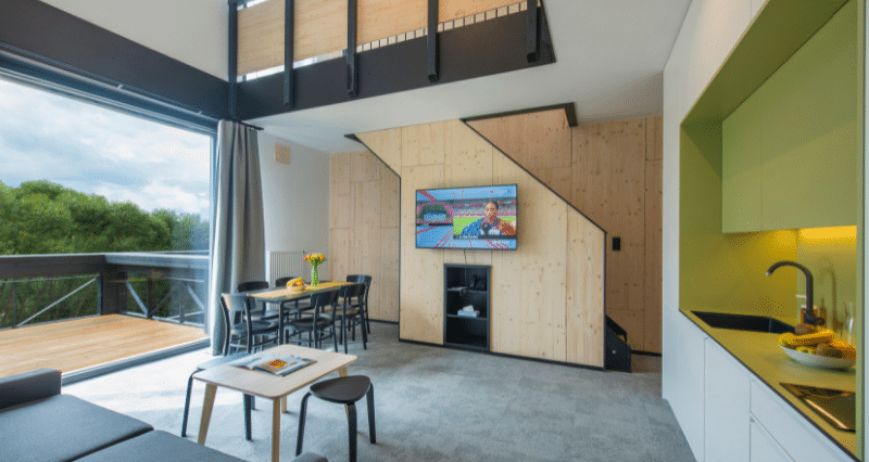Pokiaľ si na dovolenke radi varíte, určite sa vám bude páčiť plne vybavená kuchyňa aj s umývačkou riadu. Ani Superior Loft nie je ukrátený o nádhernú terasu. Viete, čo je na nich super? Výhľad smeruje priamo na areál s detským ihriskom aj celý FUN center – detičky tak môžete vypustiť a sledovať ich očkom priamo z terasy.